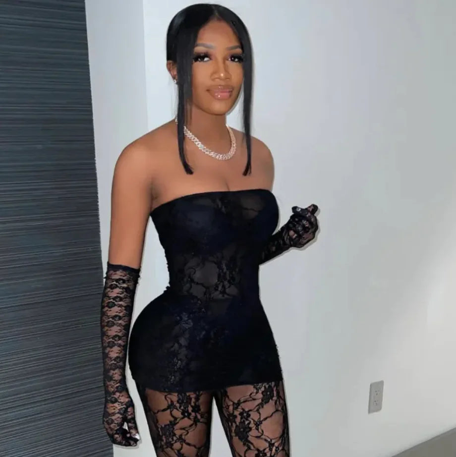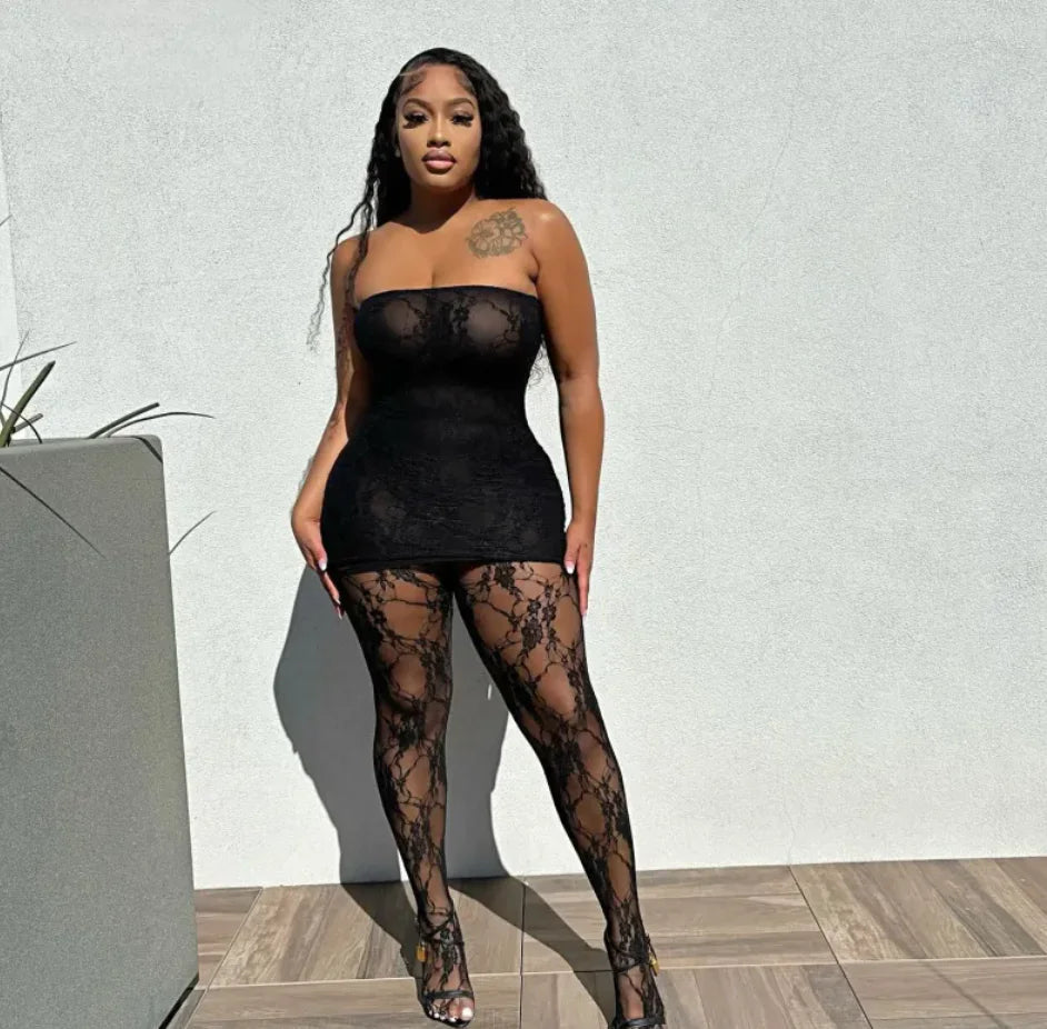 Lace Cutout See-Through Two-Piece Set Luxesai