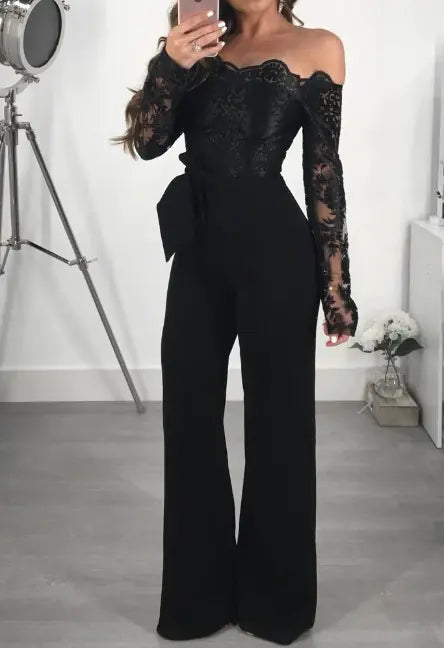 Elevate your style with our stunning Lace Slim Jumpsuits for Women. This exquisite piece combines elegance and comfort, featuring an off-shoulder design that highlights your neckline while offering a relaxed fit with loose pants.