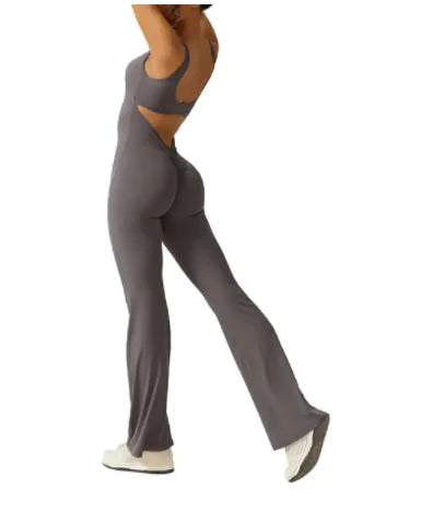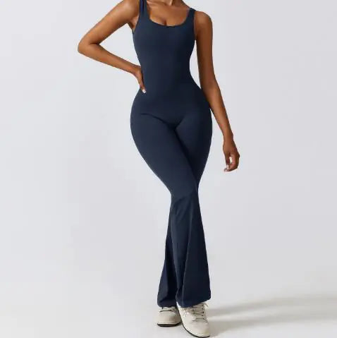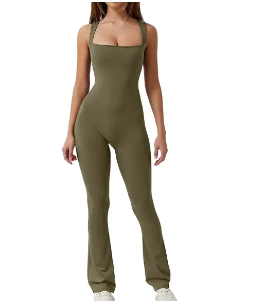 Sleeveless Flare Jumpsuit - Fitted Yoga Bodysuit (One) Luxesai