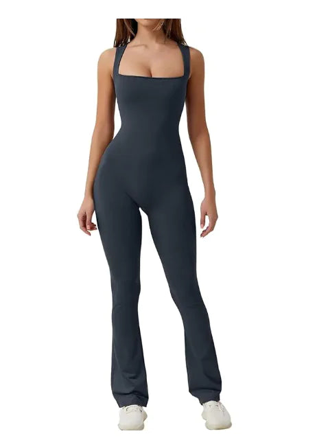 Sleeveless Flare Jumpsuit - Fitted Yoga Bodysuit (One)