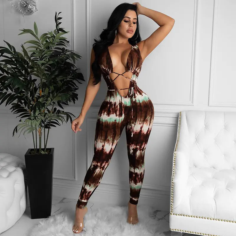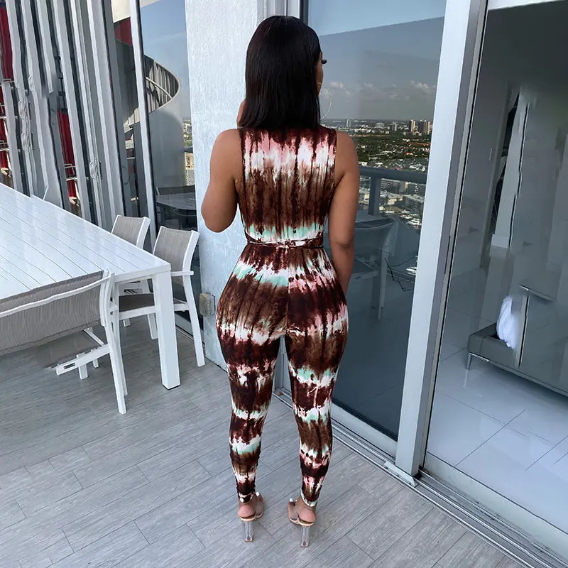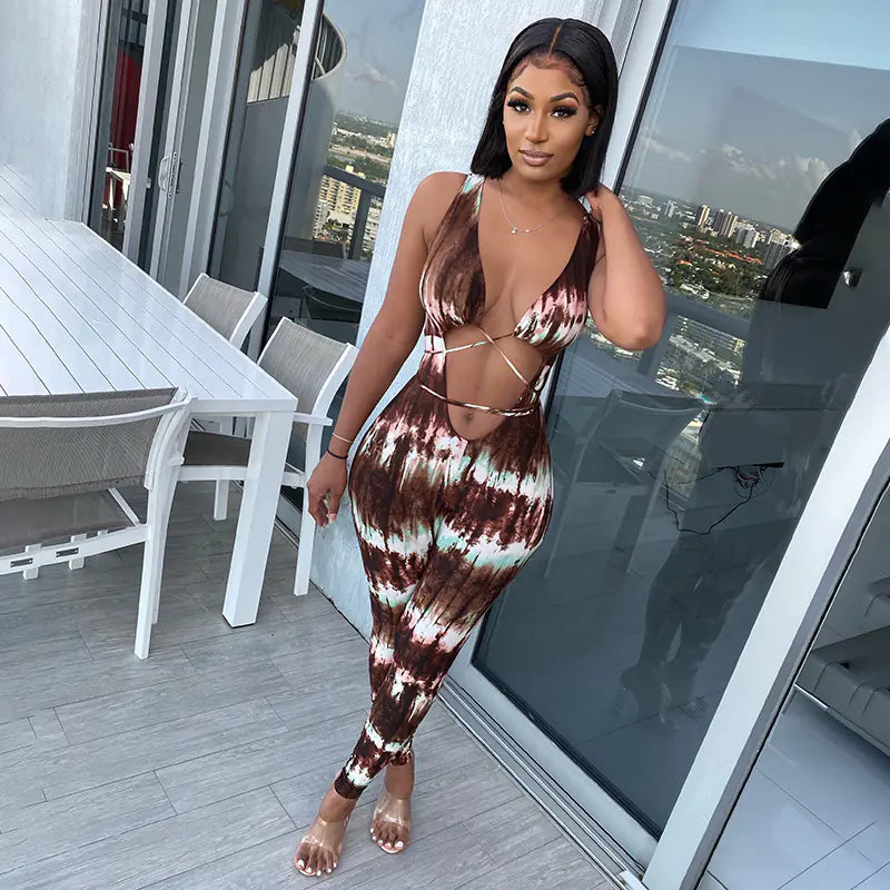 Tie-Dye Cutout Bodycon Jumpsuit Luxesai
