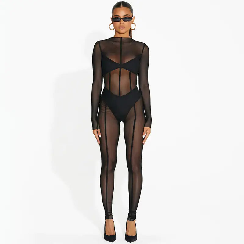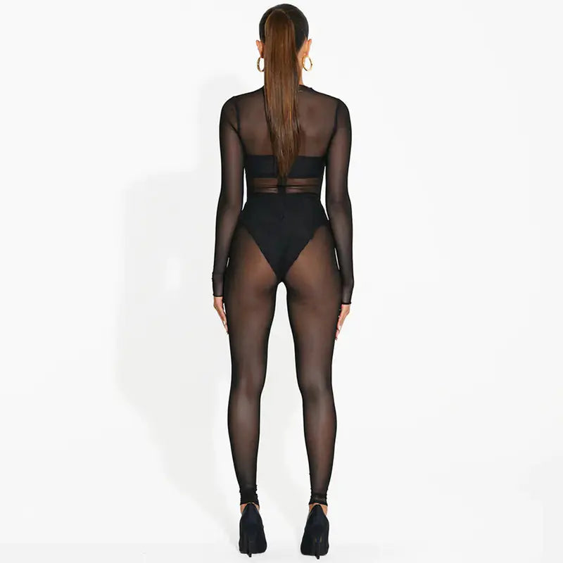 Sexy Sheer Mesh Long Sleeve Catsuit Luxesai