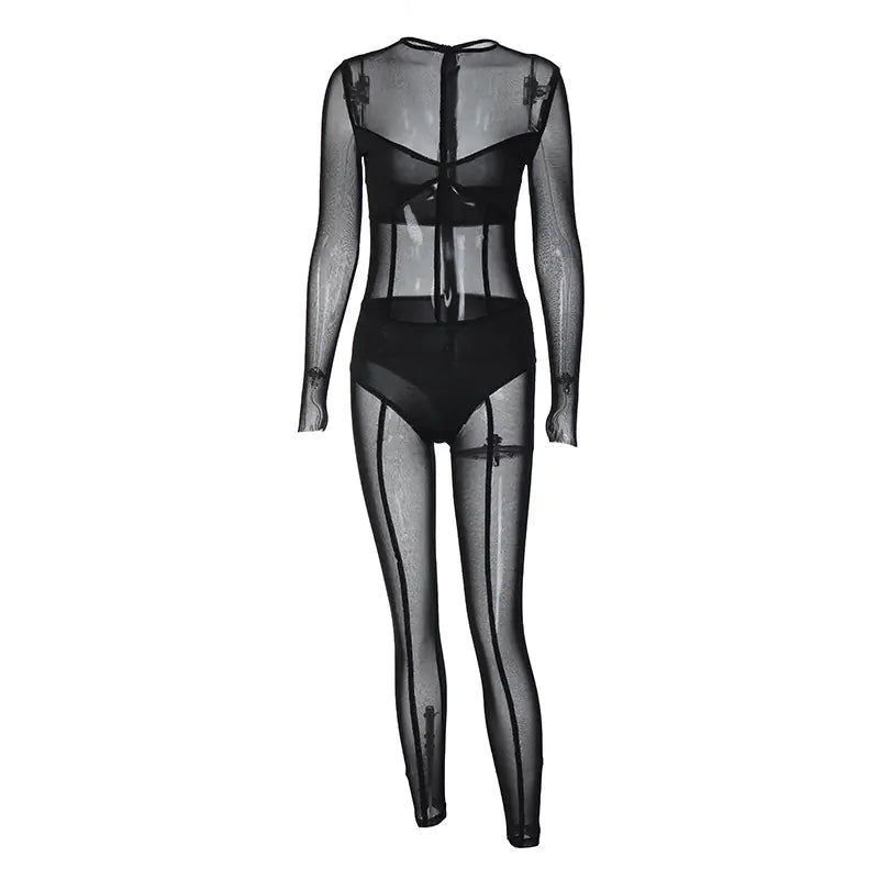 Sexy Sheer Mesh Long Sleeve Catsuit