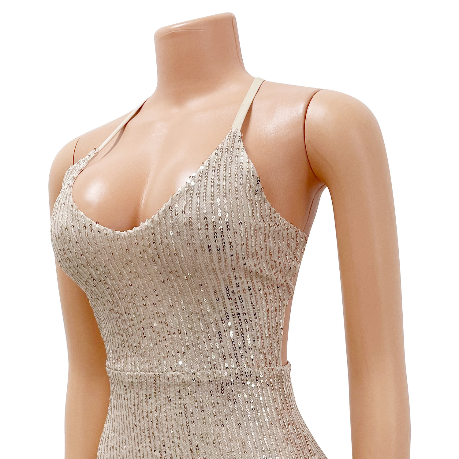 Designed with elegance in mind, this dress features eye-catching sequins that shimmer and shine, ensuring you stand out wherever you go. The backless design adds a touch of allure, making it not just a dress, but a statement piece in your wardrobe.