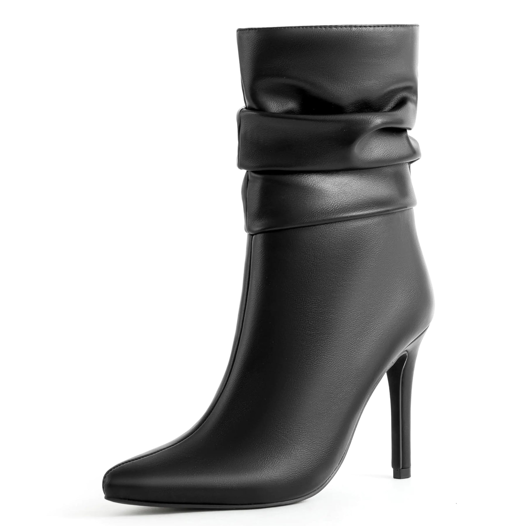 Black Slouchy Mid-Calf Boots - 3.9-Inch Sexy Stiletto High Heel Fashion Boots